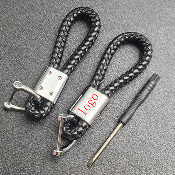 Llavero negro Cuerda de cuero Llavero de metal para Mercedes Benz BMW Audi Volkswagen Kia Ford Land Rover Toyota Skoda